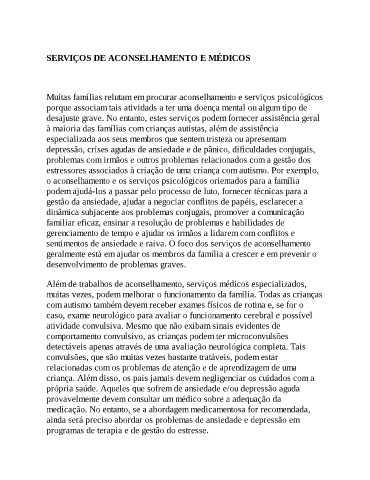 à maioria das famílias com crianças autistas, além de assistência