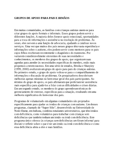 (1999, 2000) avaliaram um grupo de apoio para pais de crianças autistas.