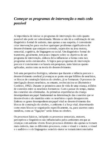 A importância de iniciar os programas de intervenção tão cedo quanto