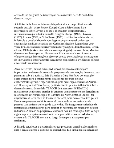 (1977), Lovaas (1992) e Schreibman (1988). Evidências adicionais da