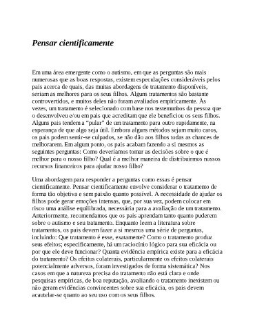 cientificamente. Pensar cientificamente envolve considerar o tratamento de