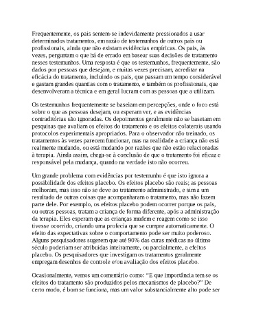 parte dele. Por exemplo, os efeitos placebo podem ocorrer porque os pais,