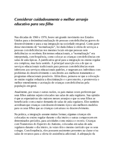 seus filhos autistas sejam colocados nas salas de aula regulares. Sua opinião