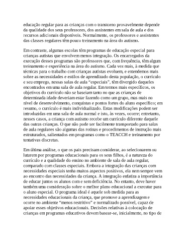 educação regular para as crianças com o transtorno provavelmente depende