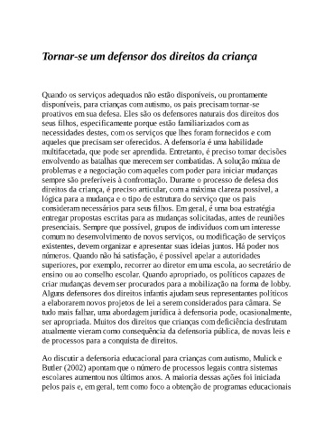 Ao discutir a defensoria educacional para crianças com autismo, Mulick e