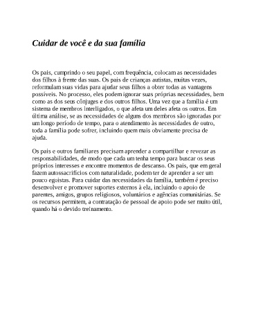 dos filhos à frente das suas. Os pais de crianças autistas, muitas vezes,