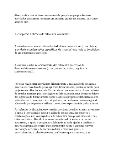 desenvolvimento de teorias mais abrangentes sobre o autismo e novas