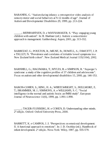 BARANEK, G. “Autism during infancy: a retrospective video analysis of