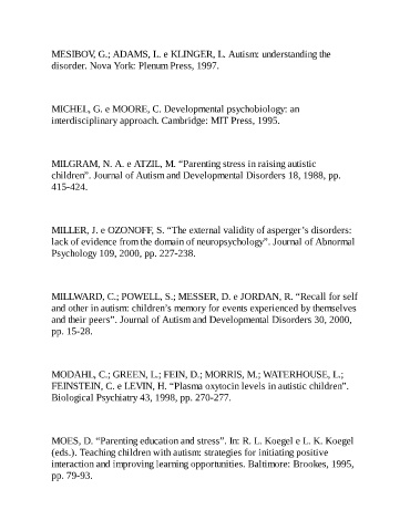 MESIBOV, G.; ADAMS, L. e KLINGER, L. Autism: understanding the