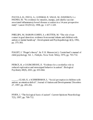 PIVEN, J. “The biological basis of autism”. Current Opinions Neurobiology