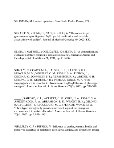 association with autism”. Journal of Medical Genetics 40, 2003, E42.
