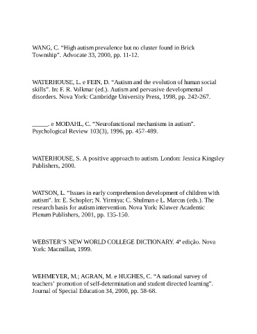 WATERHOUSE, L. e FEIN, D. “Autism and the evolution of human social