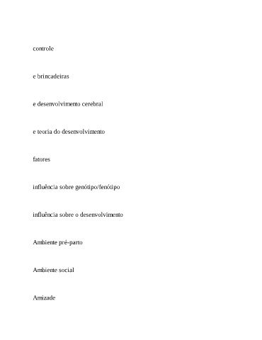 controle e brincadeiras e desenvolvimento cerebral e teoria do desenvolvimento fatores influência sobre genótipo/fenótipo influência sobre o desenvolvimento Ambiente pré-parto Ambiente social Amizade