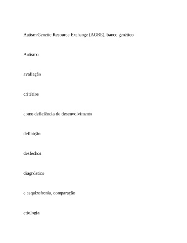 Autism Genetic Resource Exchange (AGRE), banco genético Autismo avaliação critérios como deficiência do desenvolvimento definição desfechos diagnóstico e esquizofrenia, comparação etiologia