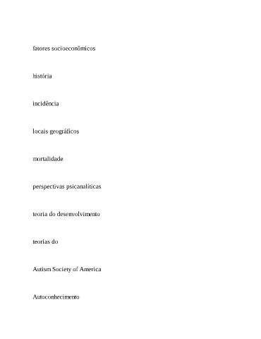 fatores socioeconômicos história incidência locais geográficos mortalidade perspectivas psicanalíticas teoria do desenvolvimento teorias do Autism Society of America Autoconhecimento