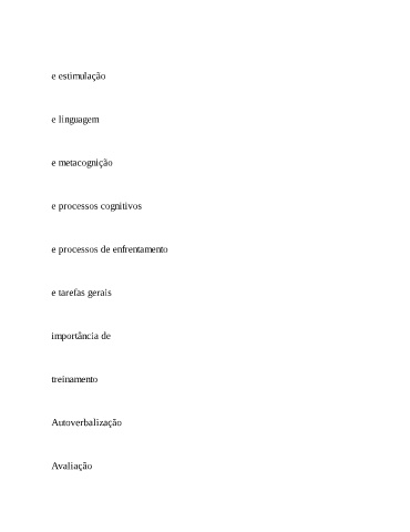 e estimulação e linguagem e metacognição e processos cognitivos e processos de enfrentamento e tarefas gerais importância de treinamento Autoverbalização Avaliação