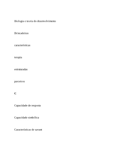 Biologia e teoria do desenvolvimento Brincadeiras características terapia estruturadas parceiros C Capacidade de resposta Capacidade simbólica Características de savant