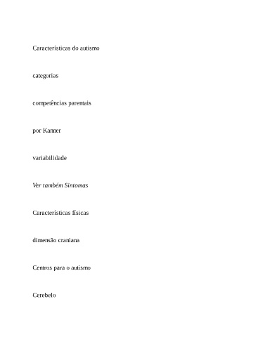 Características do autismo categorias competências parentais por Kanner variabilidade Ver também Sintomas Características físicas dimensão craniana Centros para o autismo Cerebelo