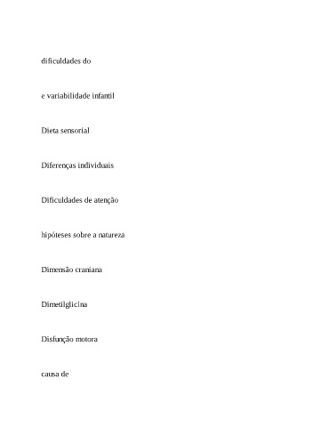 dificuldades do e variabilidade infantil Dieta sensorial Diferenças individuais Dificuldades de atenção hipóteses sobre a natureza Dimensão craniana Dimetilglicina Disfunção motora causa de