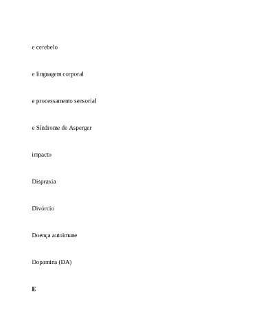 e cerebelo e linguagem corporal e processamento sensorial e Síndrome de Asperger impacto Dispraxia Divórcio Doença autoimune Dopamina (DA) E