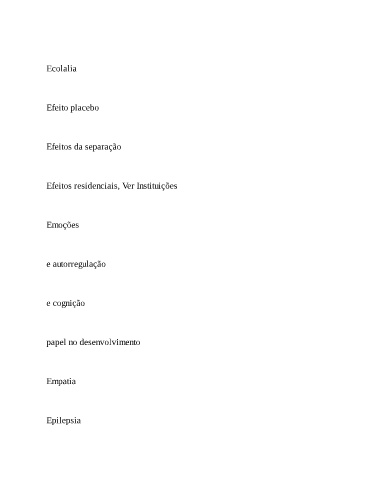 Ecolalia Efeito placebo Efeitos da separação Efeitos residenciais, Ver Instituições Emoções e autorregulação e cognição papel no desenvolvimento Empatia Epilepsia