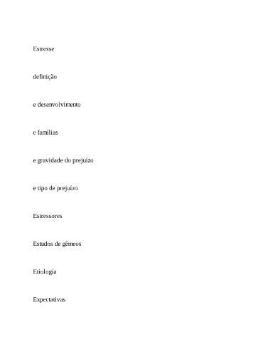 Estresse definição e desenvolvimento e famílias e gravidade do prejuízo e tipo de prejuízo Estressores Estudos de gêmeos Etiologia Expectativas