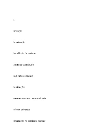 I Imitação Imunização Incidência de autismo aumento consultado Indicadores faciais Instituições e comportamento estereotipado efeitos adversos Integração no currículo regular