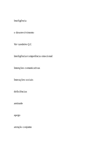 Inteligência e desenvolvimento Ver também Q.I. Inteligência/competência emocional Intenções comunicativas Interações sociais deficiências amizade apego atenção conjunta