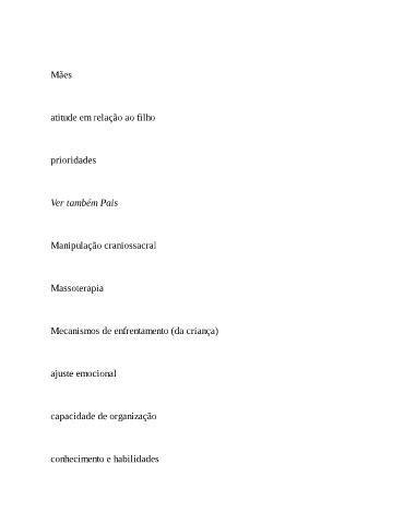 Mães atitude em relação ao filho prioridades Ver também Pais Manipulação craniossacral Massoterapia Mecanismos de enfrentamento (da criança) ajuste emocional capacidade de organização conhecimento e habilidades