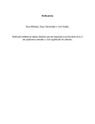 Dedicatória Para Michael, Amy, Christopher e vovó Kathy. Dedicado também às muitas famílias que me lançaram à escrita deste livro e me ajudaram a entender o real significado do autismo.