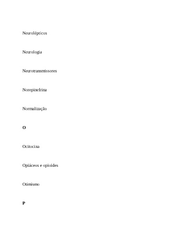 Neurolépticos Neurologia Neurotransmissores Norepinefrina Normalização O Ocitocina Opiáceos e opioides Otimismo P