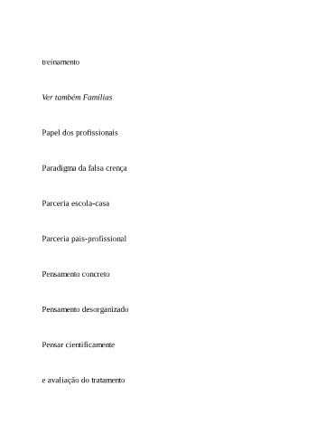 treinamento Ver também Famílias Papel dos profissionais Paradigma da falsa crença Parceria escola-casa Parceria pais-profissional Pensamento concreto Pensamento desorganizado Pensar cientificamente e avaliação do tratamento