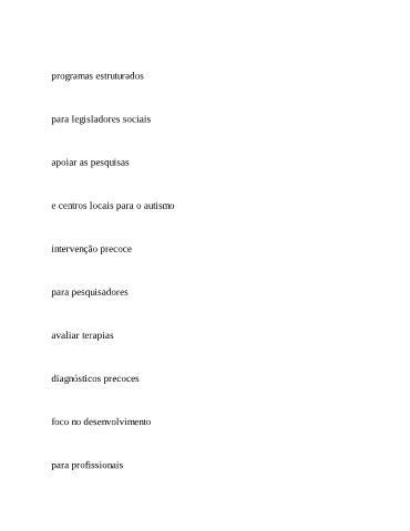 programas estruturados para legisladores sociais apoiar as pesquisas e centros locais para o autismo intervenção precoce para pesquisadores avaliar terapias diagnósticos precoces foco no desenvolvimento para profissionais