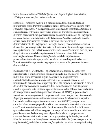 na esquizofrenia. Em indivíduos caracterizados com Transtorno Autista, um
