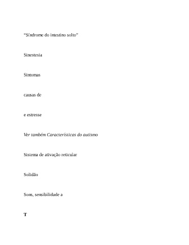 “Síndrome do intestino solto” Sinestesia Sintomas causas de e estresse Ver também Características do autismo Sistema de ativação reticular Solidão Sons, sensibilidade a T