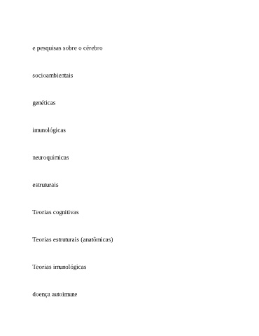 e pesquisas sobre o cérebro socioambientais genéticas imunológicas neuroquímicas estruturais Teorias cognitivas Teorias estruturais (anatômicas) Teorias imunológicas doença autoimune
