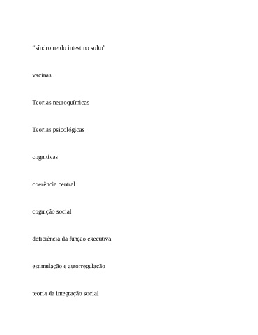 “síndrome do intestino solto” vacinas Teorias neuroquímicas Teorias psicológicas cognitivas coerência central cognição social deficiência da função executiva estimulação e autorregulação teoria da integração social