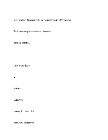 Ver também Treinamento de comunicação alternativa Treinamento por tentativas discretas Tronco cerebral U Universalidade V Vacinas Variáveis interação estatística interação recíproca