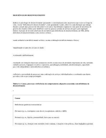 Tabela 1.1. Causas, processos e deficiências do comportamento adaptativo associadas com deficiências do