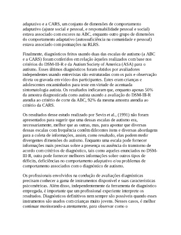 adaptativo e a CARS, um conjunto de dimensões de comportamento