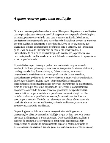 avaliação incluem psicólogos, educadores, terapeutas do desenvolvimento,