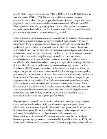 Fombonne (1996) expressa ceticismo sobre relatos de maior incidência e